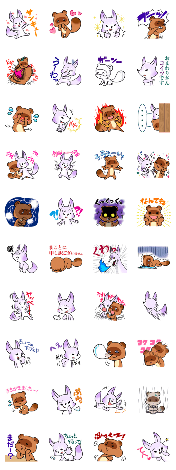 チャラい狐のツネくんとマイペース狸のたぬさんが会話をゆるーく盛り上げます。