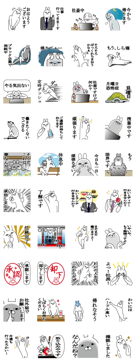 トレンンディーうさぎスタンプのお仕事敬語と丁寧語編です。会社の同僚や上司や部下にも使えます。お友達への業務連絡にも。