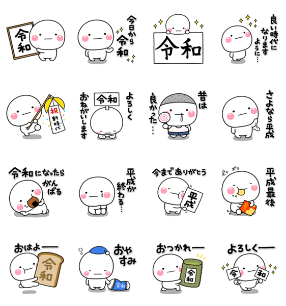 しろまるの年号スタンプです。DL可能期間が2019/05/31までの期間限定の特別16種スタンプとなります。(※再配信予定はありません)【作:いしいともこ】