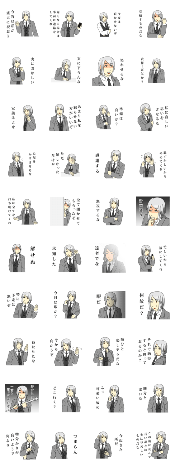 紳士・ロイスの台詞付きスタンプ第2弾。お好きな時にお好きに使いましょう。
