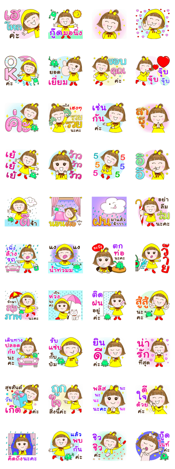 | スタンプ説明 | Happy chat on rainy day & everyday with giant font & polite word. Let send easy-to-read big letter on daily love greeting, care, congrats, HBD blessing & cheer! |