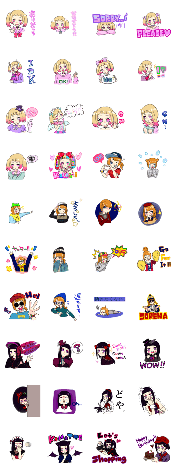 日本のカワイイ文化の使いやすいスタンプです。ゆめかわいい(?)、青文字、ゴスロリの三種類のつもりです笑是非つかってください!