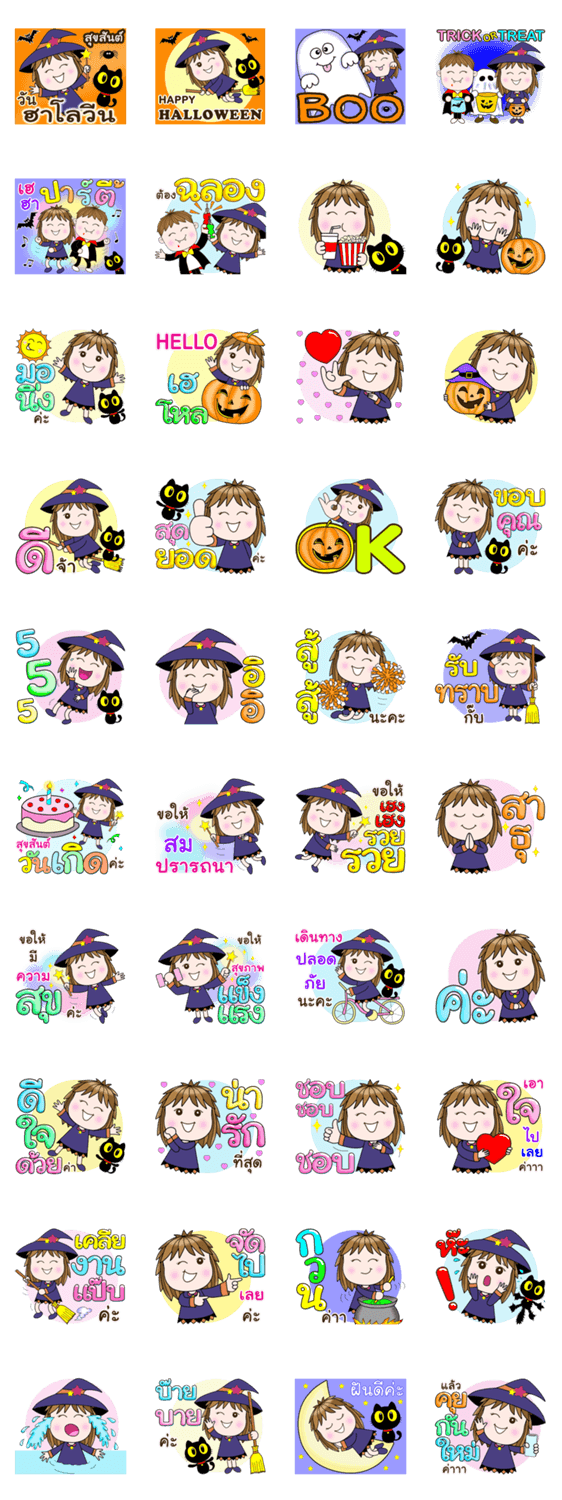 | スタンプ説明 | Happy Halloween! Send easy-to-read,big-letter words everyday greeting, love, care, congrats, blessing & cheer. Meet Jack O'Lantern pumpkin & fun Trick or Treat! |