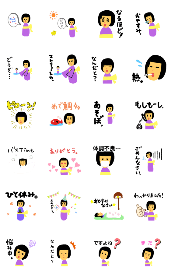 日本らしさが上品なこけしちゃんのスタンプ!ゆるくて可愛い大人気のスタンプです✡.*