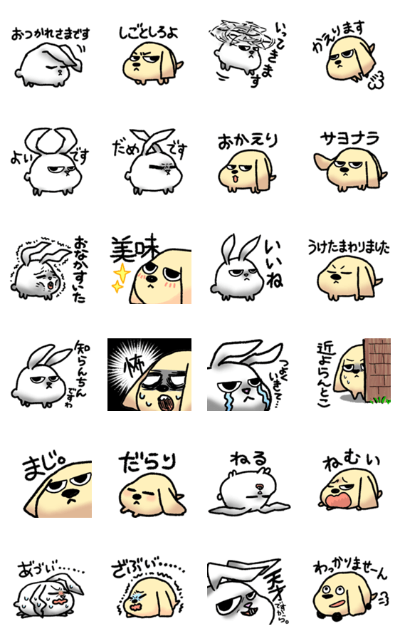 うさぎといぬのスタンプです。 煽り性能と敬語とかわいさをつめこんだらこんな感じになりました。