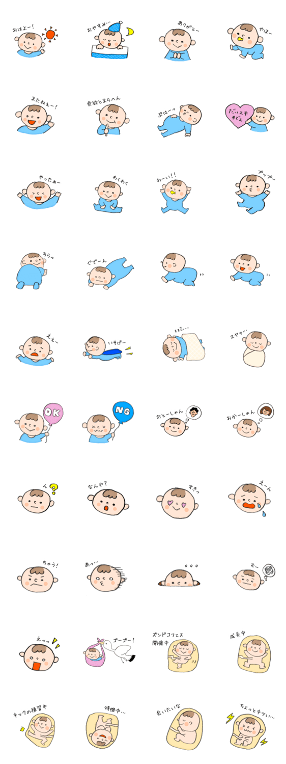 可愛いベビースタンプです。 胎児からハイハイ期の赤ちゃんにぴったり!もうすぐ誕生するバブスケをイメージして作りました。 ベビー/赤ちゃん/胎児/男の子/ママ/パパ