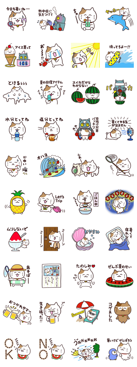夏に使えるゆるっと可愛いスタンプです。 もれねこと一緒に夏を楽しもう!