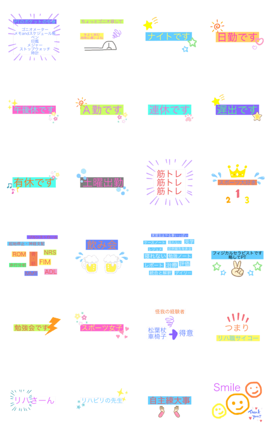 リハビリスタッフ、PT、理学療法士、シフト -LINEスタンプマニア