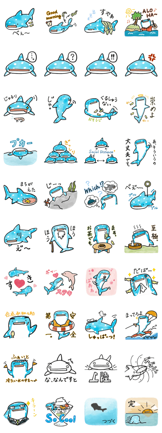 毎日をゆるく楽しく生きているジンベエザメの「じん兵衛」。大きなお口のじん兵衛に、こちらも思わず口元が緩みます。