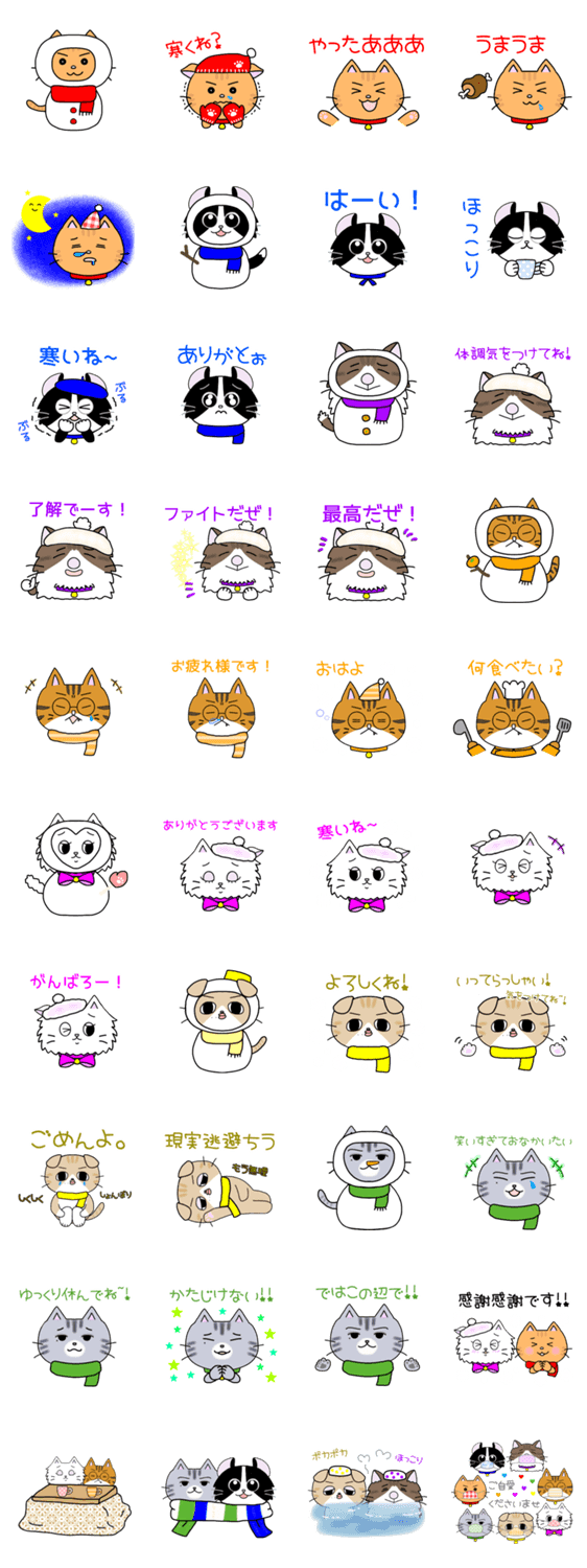 わちゃわちゃ元気な七匹のにゃんこ達の可愛いスタンプです。 第三弾は冬バージョン。#初売りスタンプ