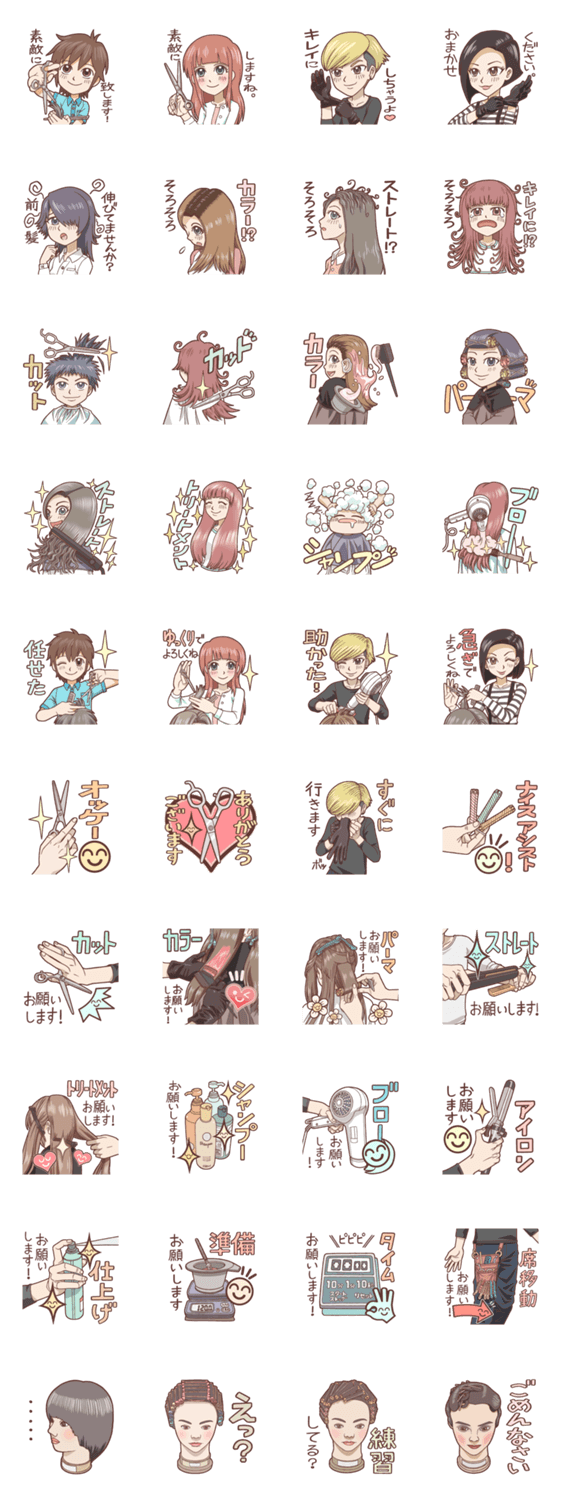 美容師がサロン現場で使える素敵なスタンプです。お客様とのコミュニケーションや、スタッフ同士の営業中のやりとりにオススメ!