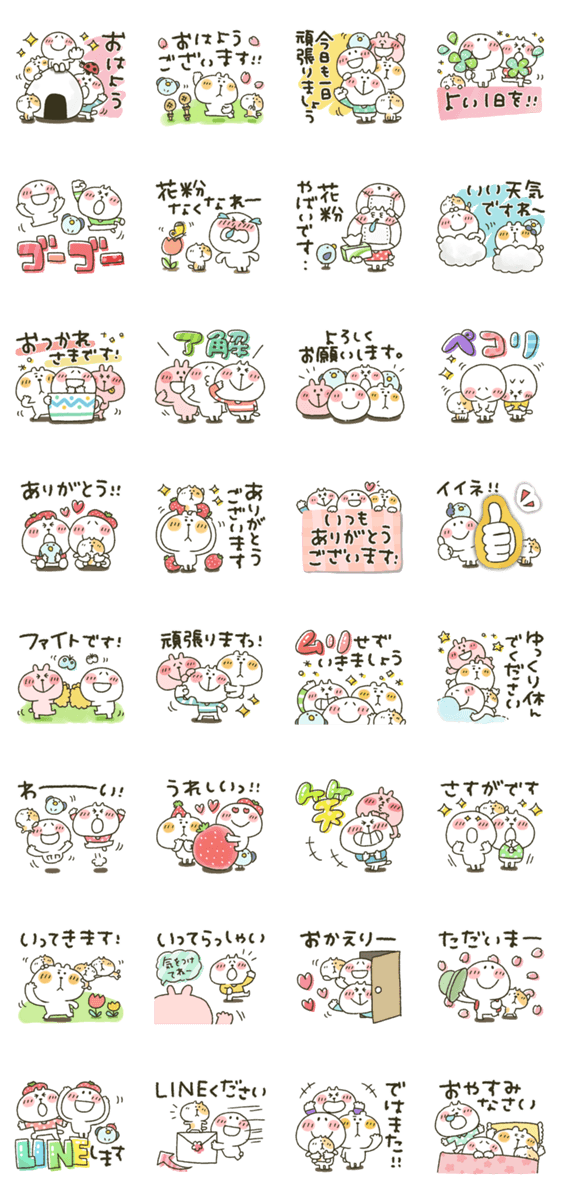 まるぴ、くまぴ、うさぴ、ねこぴ、トリさん、ネコさん、全員集合しました!春バージョンです。花粉症の方にもおすすめ。