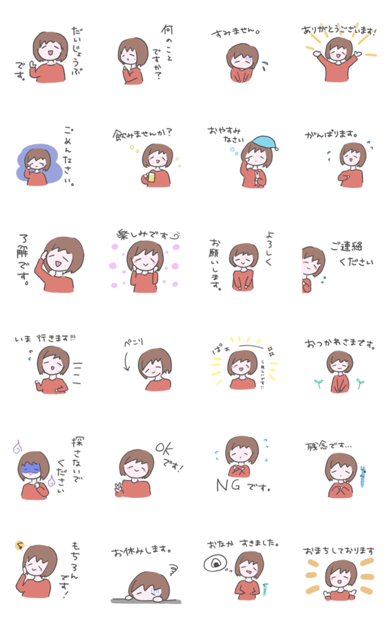 ゆるい糸目の子の敬語スタンプです。たくさん使ってね。