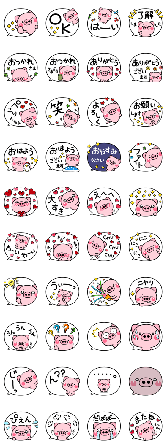便利に使えるぶたさんの日常吹き出しスタンプです。【作:いしいともこ】