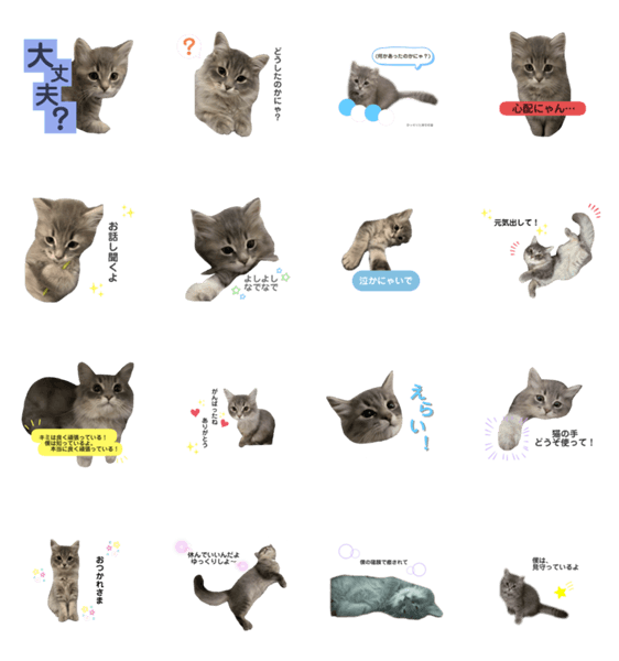 ラガマフィン猫「ロイさん」の心配、慰め、応援スタンプです。