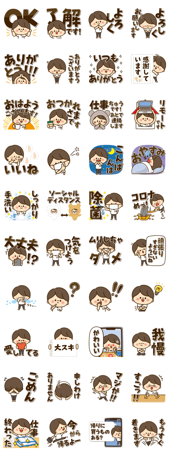 かわ主婦【新しい生活様式編】の男性バージョン! 家族間での連絡に便利なスタンプなので奥様、彼女さん、パートナーとの会話にお使いください!(旦那、夫、パパ、彼氏)