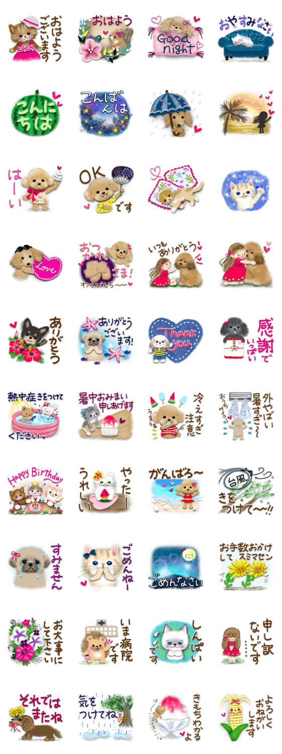 夏仕様の便利セットで、文字も大きめです。セット内容は、基本挨拶・日常が20個、夏ことばが5個、文字なし5個、ありがとう系5個、ごめんなさい系5個です♡