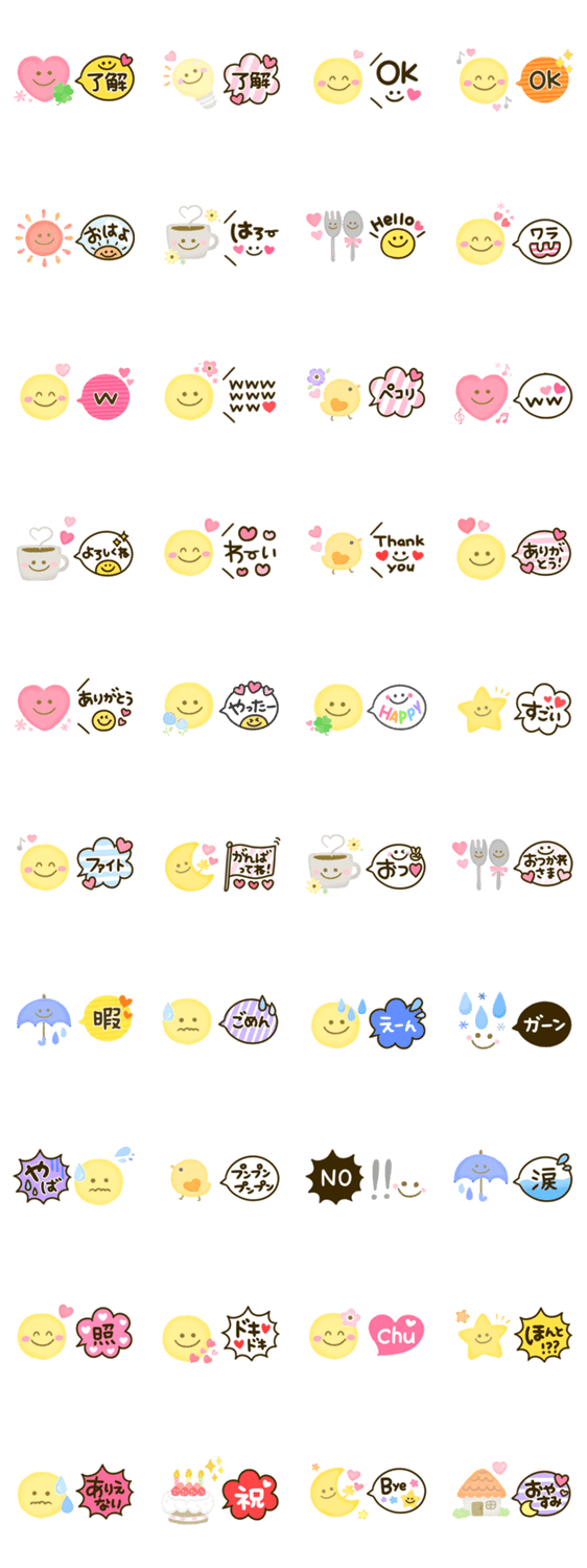 パステル調で優しい色合いのシンプルで大人かわいい♡みんなで使える無難な笑顔の日常会話セットです。 かわいい/ふきだし/BIG大きな文字/カップル/大人可愛い/敬語