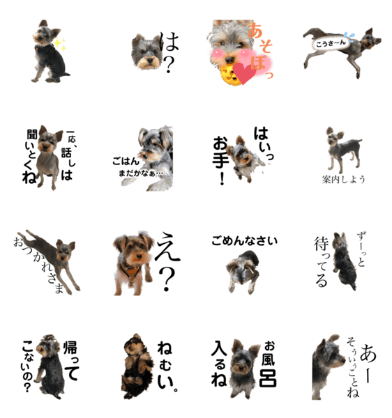 飼ってるヨークシャーテリアの男の子、アンディです。いろいろな表情を楽しんでいただけたら嬉しいです!!※LINEスタンプメーカーでつくったスタンプです。