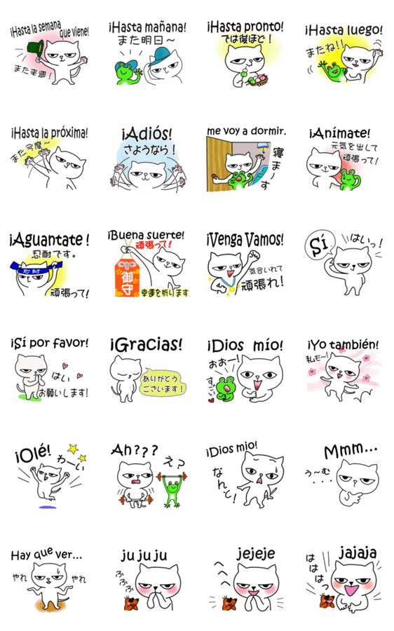スペイン語と日本語のしろねこロックバージョン3 色々なさようなら、頑張れ、笑いなどがあるので使い分けてみてください。