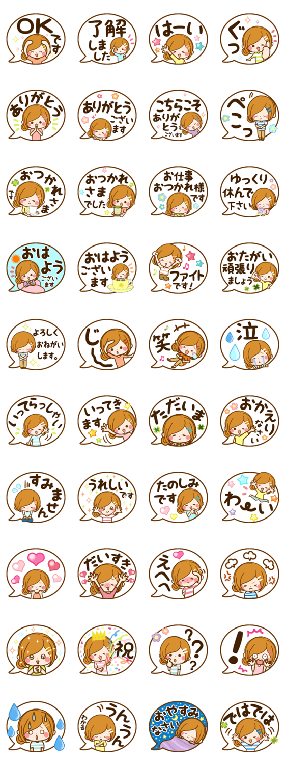 毎日便利に使える♪シンプルで大人かわいい「吹き出しスタンプ」です☆敬語が多めなので、仕事、ママ友、PTA役員、家族、幅広い交友関係でお使い頂けます♪【再販です】