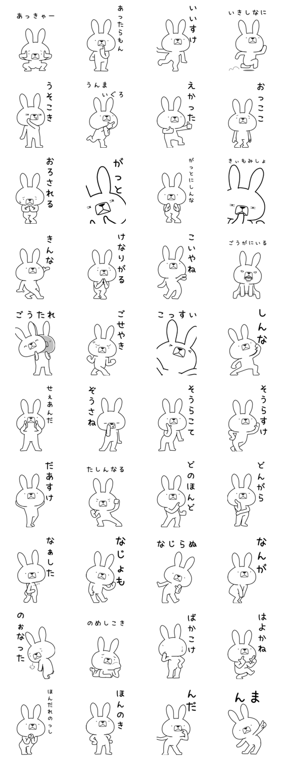 いろんな方言をつかううさぎのスタンプ吉田弁編(新潟・燕、そうでない方も使えるかも。また違う県verに似た方言が見つかるかも) ※このスタンプはトークルームで大きく表示されるBIGスタンプです。