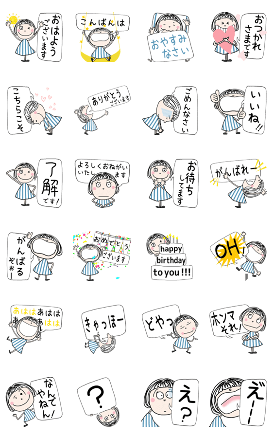 大人気☆ボブヘアの女の子キャラクターの飛び出す吹き出しポップアップスタンプ!色んな場面で毎日使える日常ど定番!シンプルなPOPUPスタンプです♪edacchi