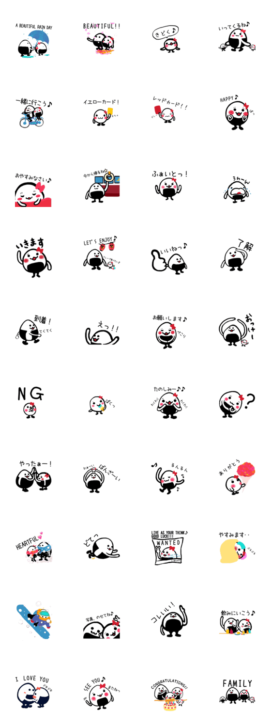 使いやすさと、かわいさと、愛とやさしさにあふれたスタンプです。おにぎりが、あなたとあなたの大切な人を繋ぎます。