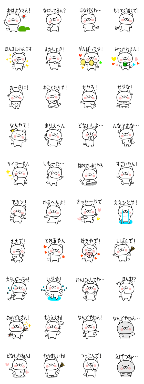 しろくてまるい猫:ねこ、ネコの関西弁の日常会話で使えるスタンプです もるきゅた作