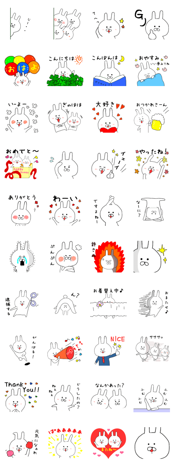 ちびうさぎのスタンプ基本セットシリーズ第三弾です☆よく使う日常会話、おめでとうありがとうなどの入ったもっと使える基本セットです♪ご家族、お友達、彼氏彼女に♪