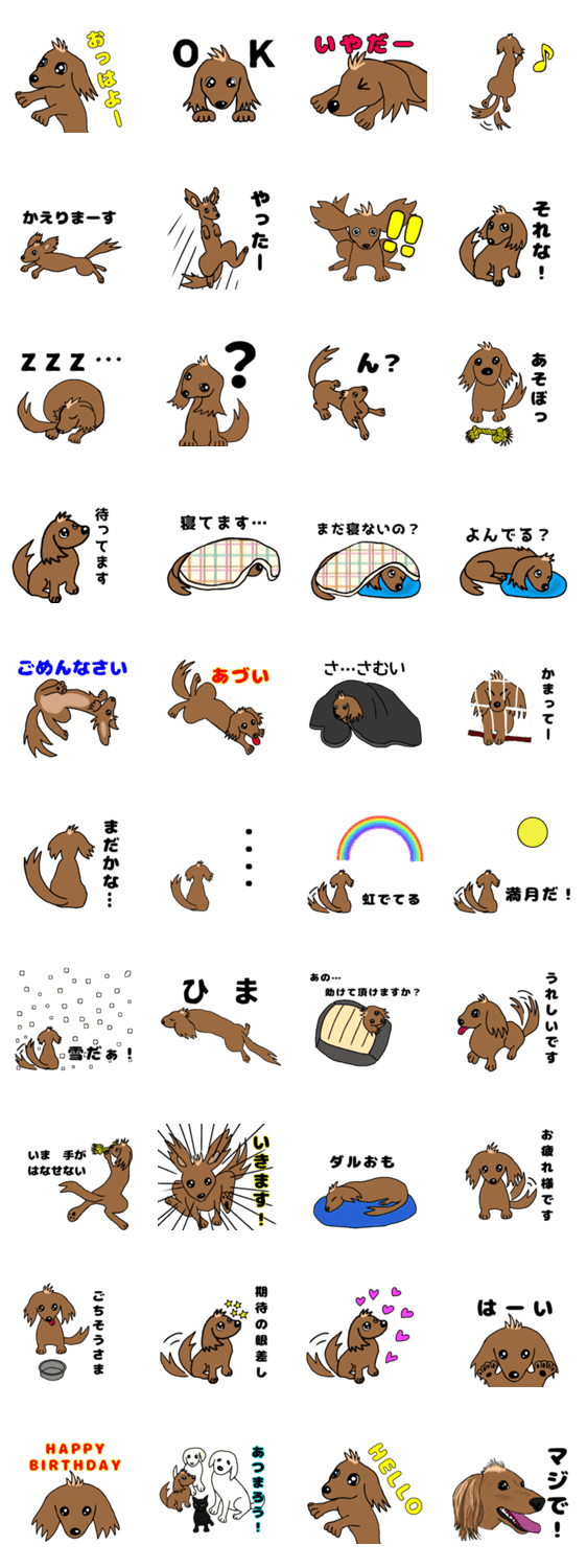 モヒカンが特徴的なダックスフントちゃんの日常で使えるスタンプ