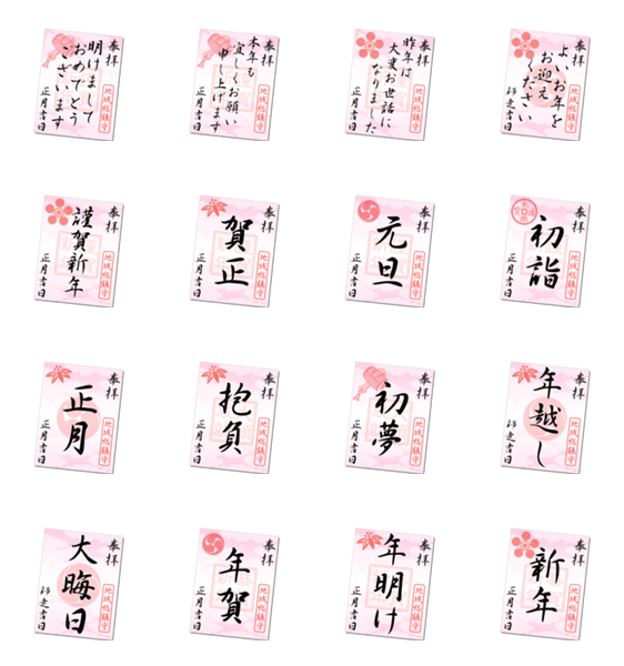 御朱印(ピンク色)お正月 -LINEスタンプマニア