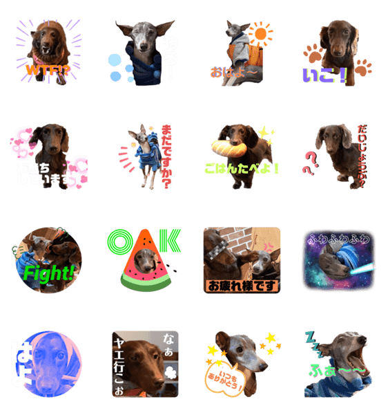 アビの元に、謎の宇宙船(保護犬カフェ)からの襲来によりジルというヨーダ似のイタリアングレードハウンドとの生活が始まったそんな大阪ローカル兄弟のスタンプ