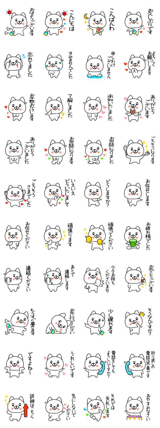 しろくてまるいネコキャラの敬語スタンプです。もるきゅた作 けいごスタンプ★日常会話スタンプ@毎日使えるスタンプ☆