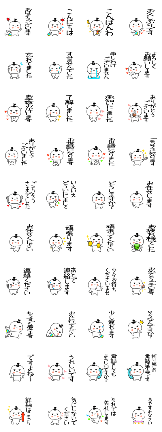 しろくてまるいチョンマゲくんの敬語スタンプです でか文字スタンプ☆日常会話スタンプ☆毎日使えるスタンプ☆もるきゅた作