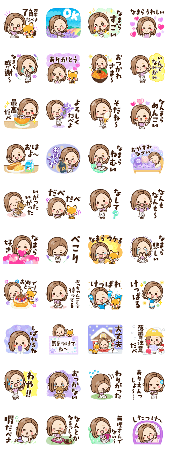 ラベンダーが癒し♡大人女子の毎日つかえるかわいい北海道弁スタンプ♪可愛いキタキツネも。冬の気づかい言葉/女の子/雪/札幌/函館/小樽/道産子/どさんこでお探しの方も。