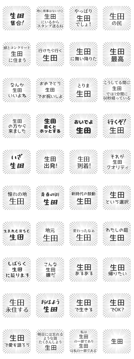 東京神奈川エリアを舞台にした漫画風セリフスタンプ。集中線で叫べ。地元の人にも憧れてる人にも。面白いのが見つかると嬉しい。集中線。地元愛。