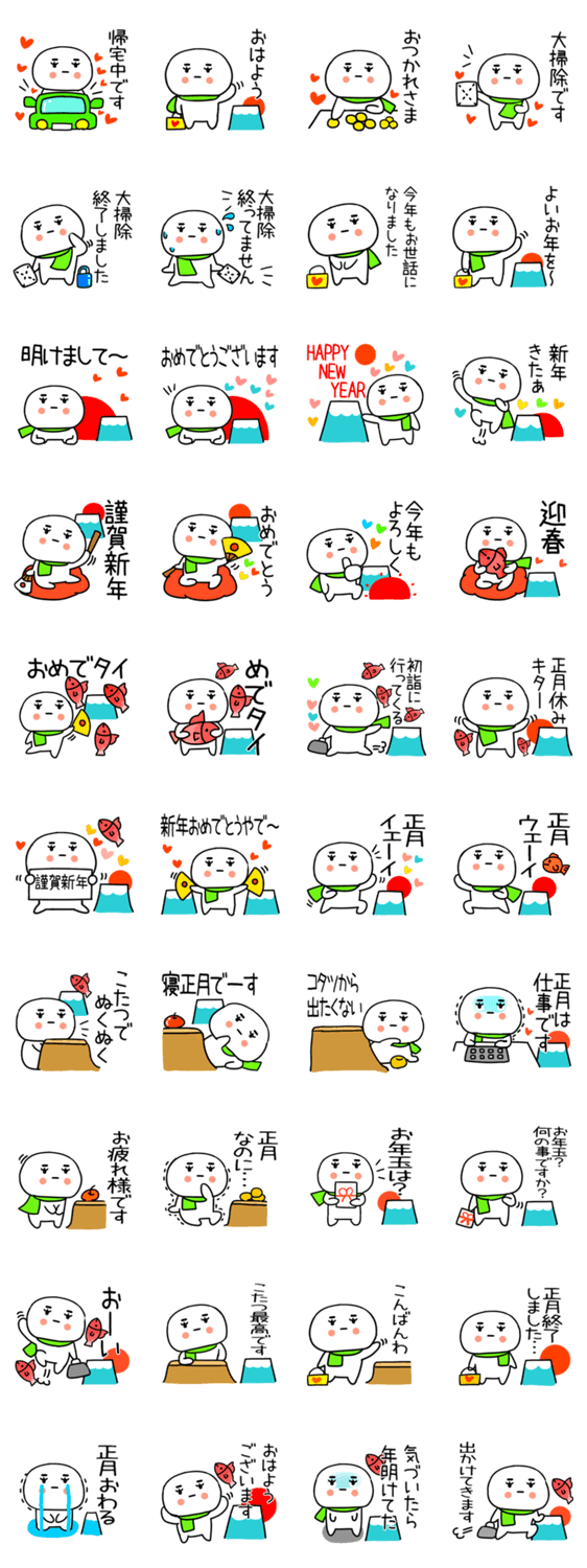 冬に毎日使える日常会話スタンプです。しろまるいキャラのあけおめスタンプ★クリスマス、正月ネタもあります。 もるきゅた作