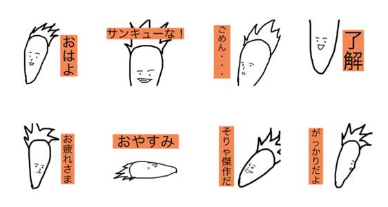 LINEスタンプメーカーでつくったスタンプです。日常会話に使える表情豊かな人参。