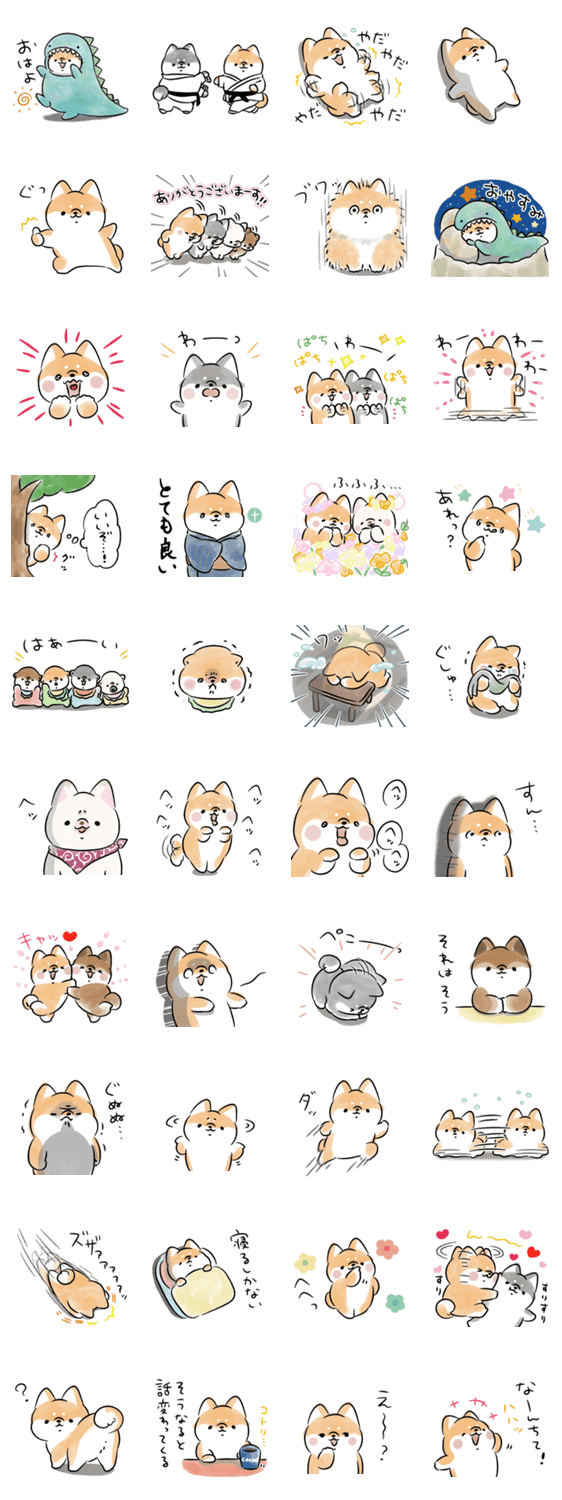 くだけた表現をするお茶目な柴犬のスタンプです