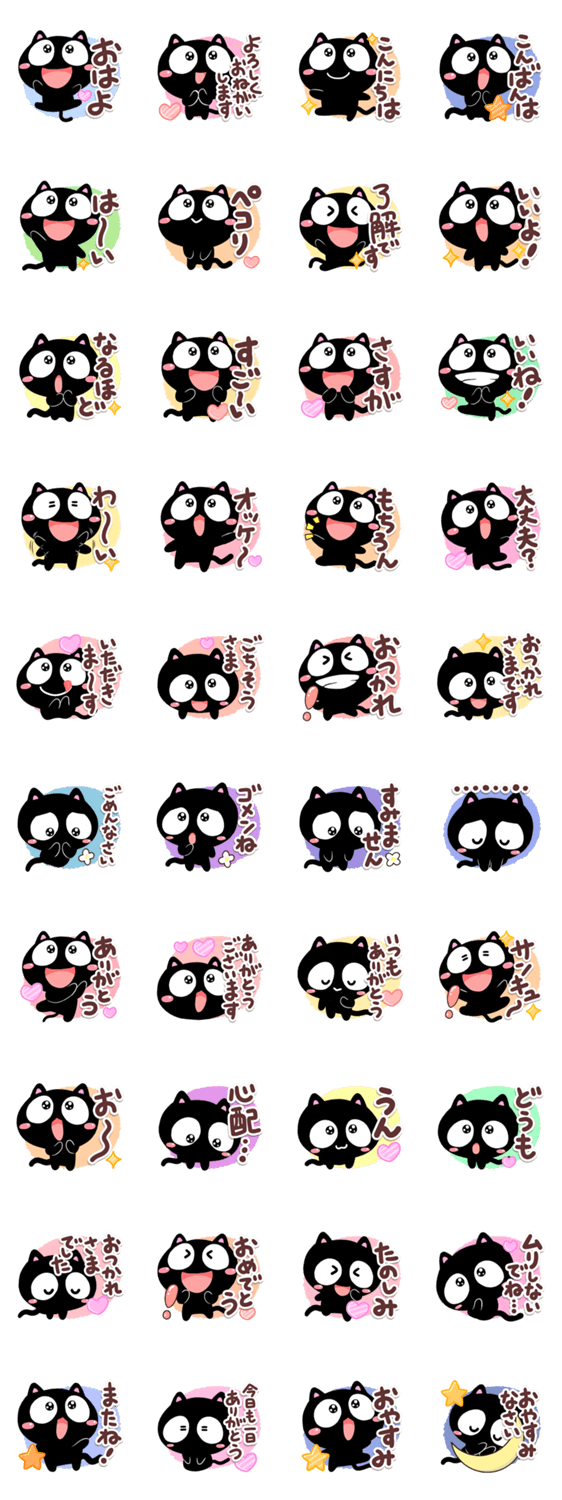 黒猫【くろちー】のかわいく元気な、便利で使いやすいクロネコスタンプです。可愛い、くろねこ好きな方にぜひ。【かたこ】ボンベイ・保護猫・ロシアンブルー・マンチカン