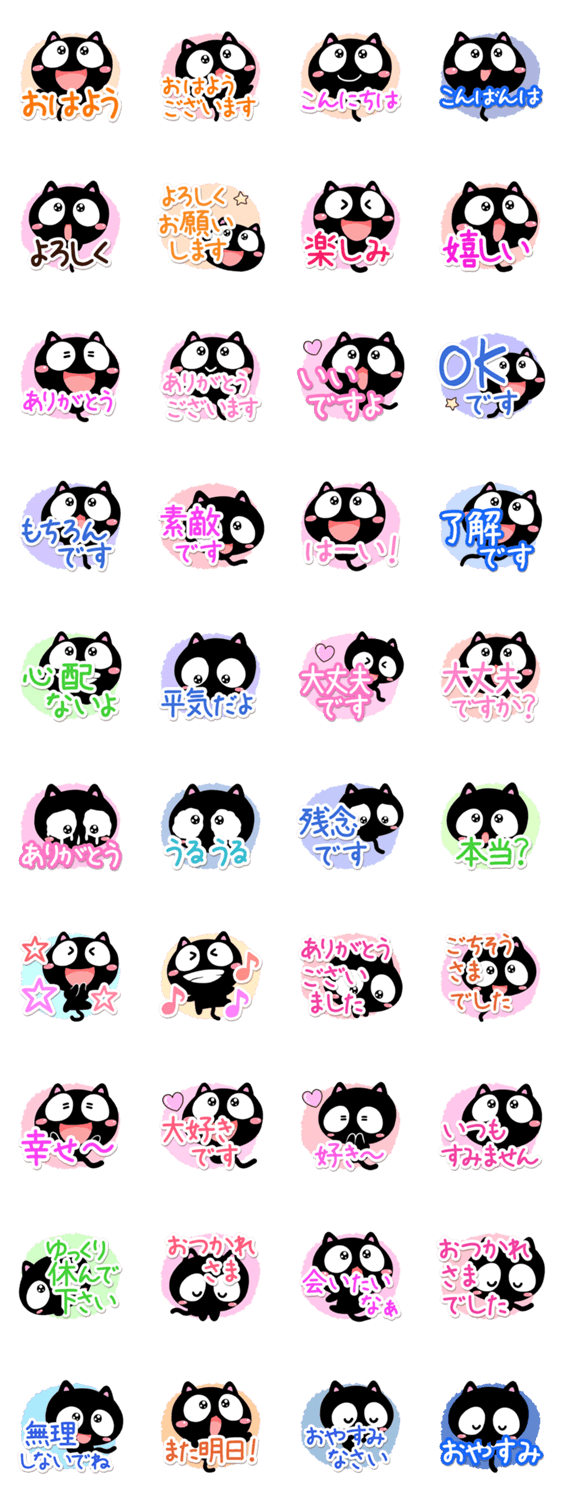 かわいい黒猫【くろちー】の、ていねいで使いやすい敬語のクロネコスタンプ。くろねこ好きな方にぜひ。【かたこ】ちいさい・あいさつ・可愛い・楽しい・明るい・挨拶