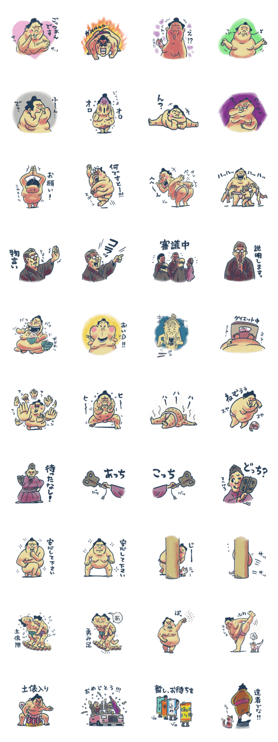 相撲好きやぽっちゃり系の方にオススメ。おかしな力士をはじめ、行司や勝負審判はもちろん、オマケにかわいい三毛猫も付けました。煽り系の日常会話から相撲観戦にどうぞ。