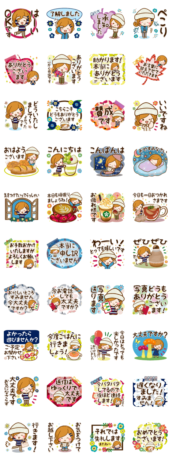 ちょっぴり秋冬モードで(年中OK)大人かわいい敬語の日常スタンプです♪お友達はもちろん、お仕事、ママ友、PTAなどの気づかう場面でも活躍できるように考えました★