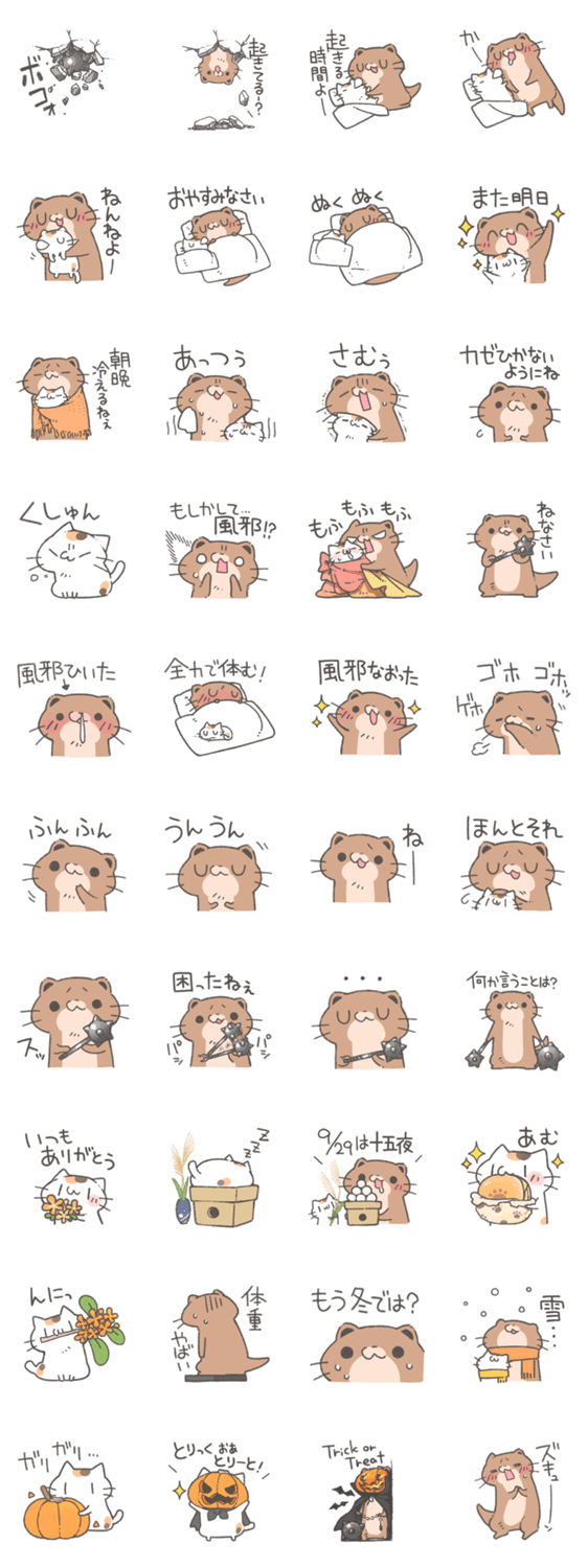 秋の過激カワウソ始めました。日常、仕事、遊び、恋愛、シンプルでどんな時にでも使いやすい便利スタンプ!ちょっと過激ですけど愛故です。ハロウィンとお月見入れてます!