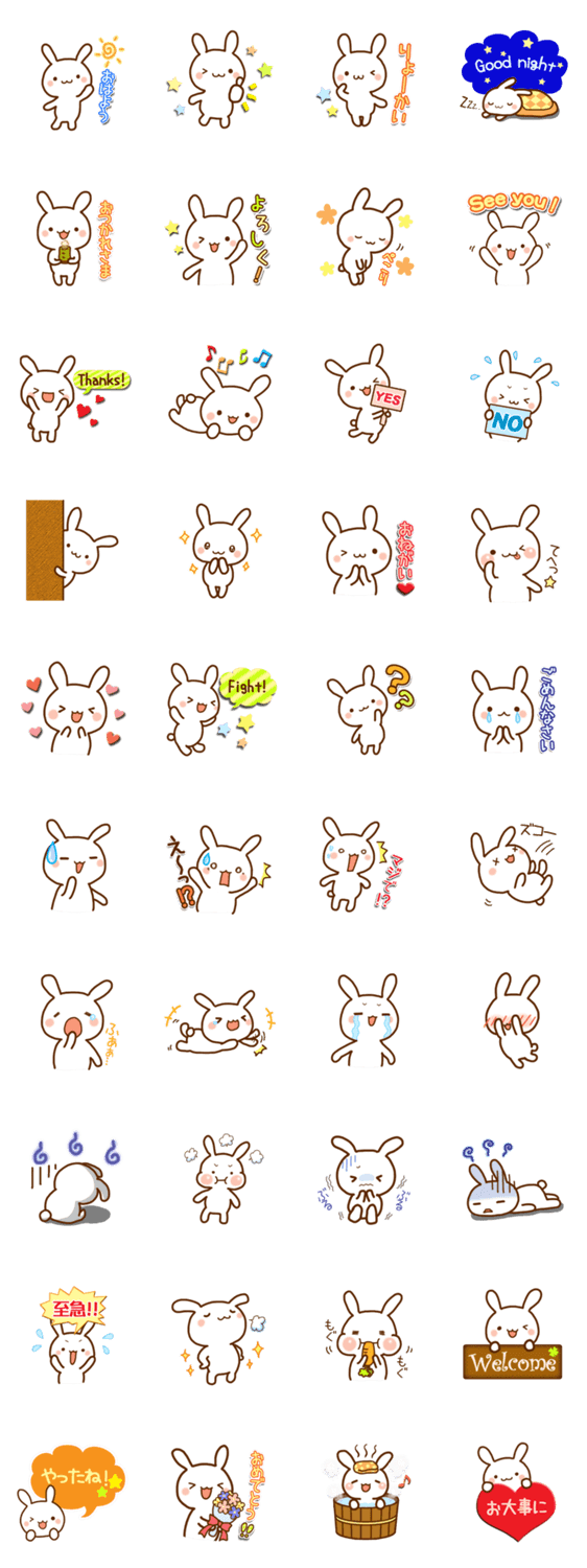 ゆるくて可愛いうさぎが日常会話をサポートします。よく使う言葉やポーズを中心にまとめた使いやすいスタンプです。