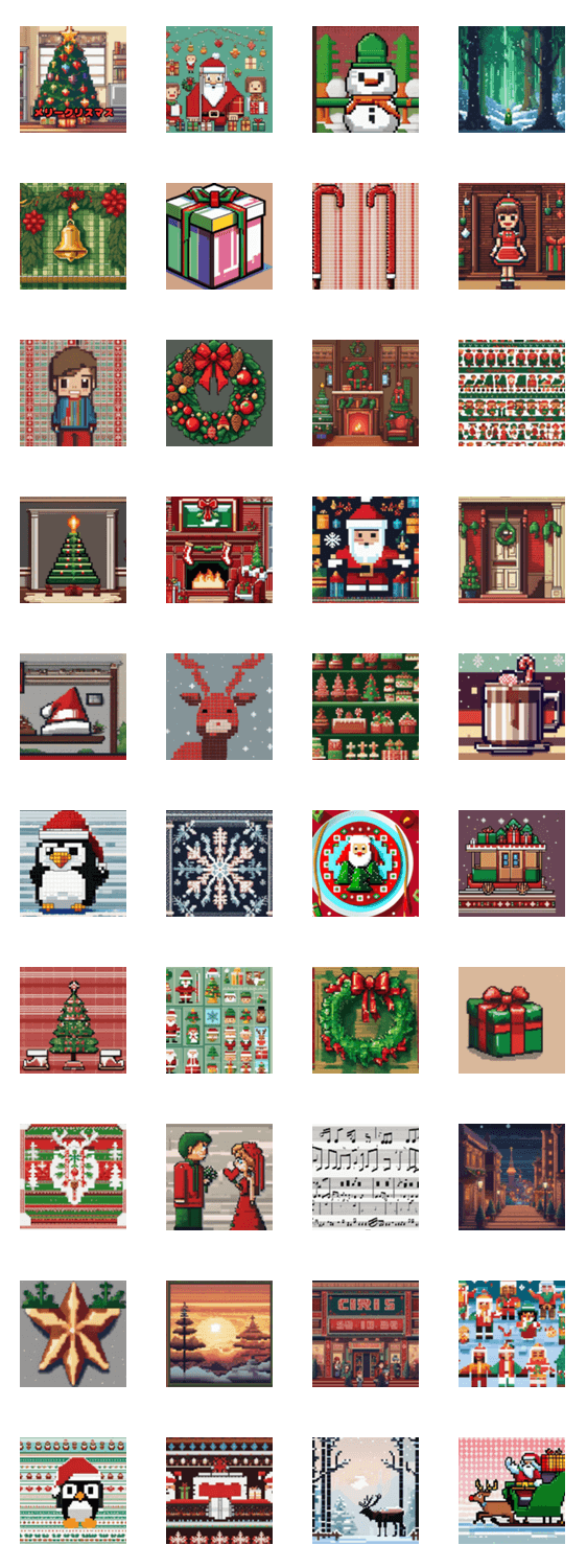 "楽しいデザインのクリスマススタンプで、ホリデーシーズンの喜びをシェアしましょう!メッセージに楽しさを加え、チャットにシーズンの魔法をお届けします。"
