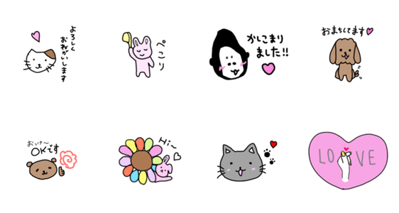 ゆる動物たち、手書きで書きました。よく使う文面をピックアップしました。