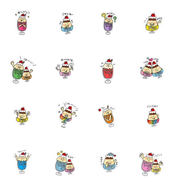 プリンさんとクリームソーダさんのスタンプです。 プリン/クリームソーダ/虹色/メンカラ/挨拶/1年中