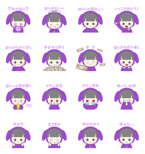 ゆるっとアルラビちゃん〜推し活編(紫)〜 -LINEスタンプマニア